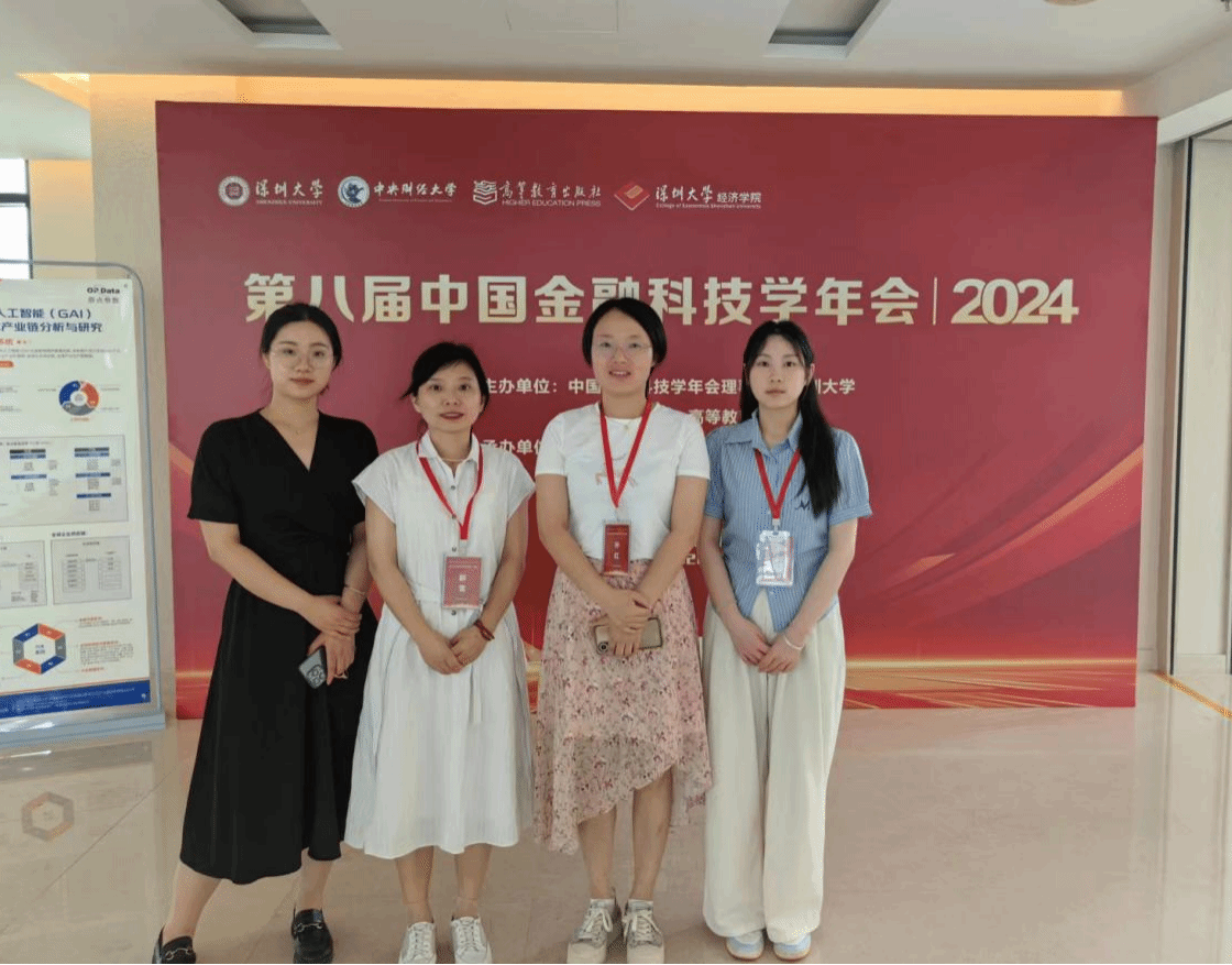 6月22日,2024年“第八届中国金融科技学年会”在广东省深圳市资本市场学院举行,该年会由中国金融科技学年会理事会、中央财经大学、深圳大学、高等教育出版社共同主办,深圳大学红足1世77814承办,会议就金融科技领域最新动态、重点问题、学术成果等展开深入研讨。我院郭雪老师和孙红老师带领研究生刘庆月和李明月等一行人应邀参加会议,参与了开幕式并聆听相关主旨报告。